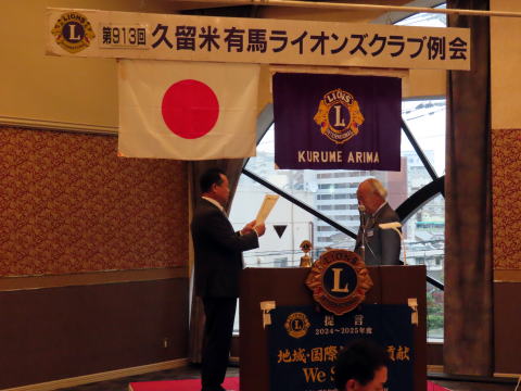 ガバナー功労賞 L古賀義久(クラブ会長)
